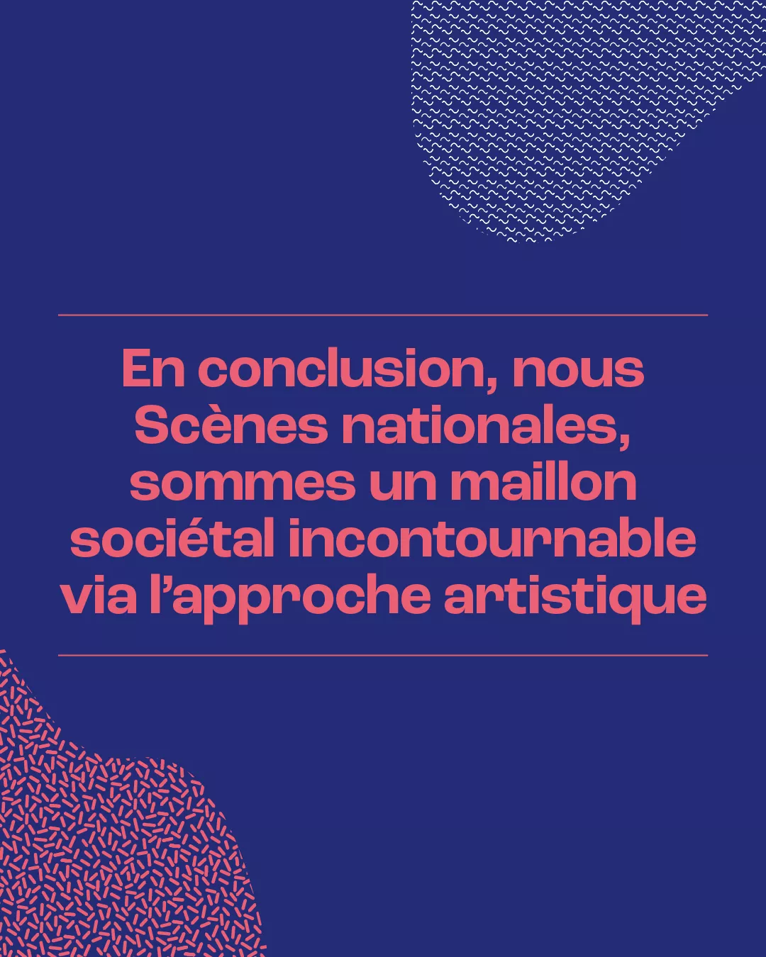 Dans un monde qui se durcit continument, mieux vaut être nombreux et solidaires, faire groupe plutôt que de se replier sur soi. Le public le sait bien. Il est présent en masse dans les salles, hors des salles (festival en plein air, ateliers…), dans des proportions d’avant-COVID, parfois même plus. Les équipes des Scènes nationales font bloc aussi pour faire vivre ces lieux. Et les partenaires, les collectivités locales en première ligne (qui représentent trois quarts des financements), malgré le fait qu’elles soient soumises au rude régime de l’État, font front également pour soutenir ces 78 établissements qui maillent le territoire hexagonal et outremarin. Nadja Pobel, journaliste